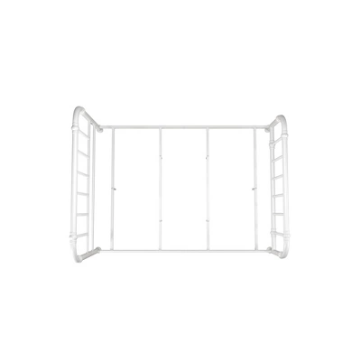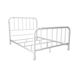 Every inch of the Emilia Metal Bed certainly invites your little dreamer to climb into! The Emilia is designed with soft curved spindles on the headboard, footboard and feet, and adorned with the diamond scrollwork for a complete timeless elegant appeal. It is crafted in sturdy metal frame with a center leg for added support and stability (requires foundation for mattress, sold separately). Available in classic white, charming pink and in twin or full, your child will be delighted to slumber in this bed anytime!