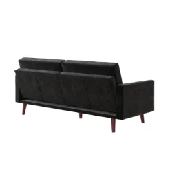 Dress up your living room in modern elegance with the Room & Joy Jayce Coil Futon. Upholstered in lush and soft velvet fabric, found atop on warm tapered wood legs, the Jayce Coil Futon is designed to beautify any home. With its clean-lined silhouette, slim track arms, padded backrest and encased coil seat cushion, you are guaranteed to enjoy kicking back in the futon throughout the day. Built to last, the frame is made with sturdy wood to ensure durability and stability for years to come. Sit back with friends over coffee, slouch back for a midday retreat or open up the futon sleeper to accommodate overnight’s guest. With one simple push or pull on the backrest, you can simply adjust the Jayce to a lounging or sleeping position at the convenience of your fingertips. Available in multiple colors, the Jayce is designed to fit small living spaces with its versatile and compact design!