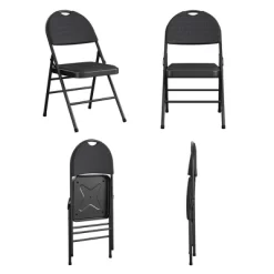 Set Of 4 Triple Braced Commercial Xl Comfort Padded Metal Folding Chair Black – Room & Joy