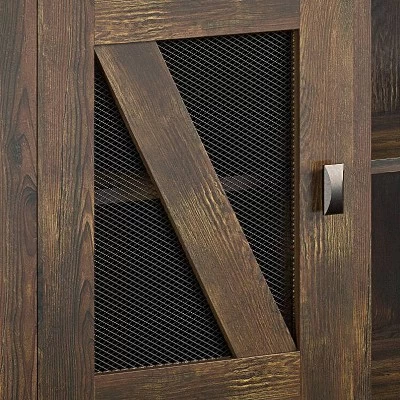- Made of laminated MDF and particleboard with metal mesh door inserts